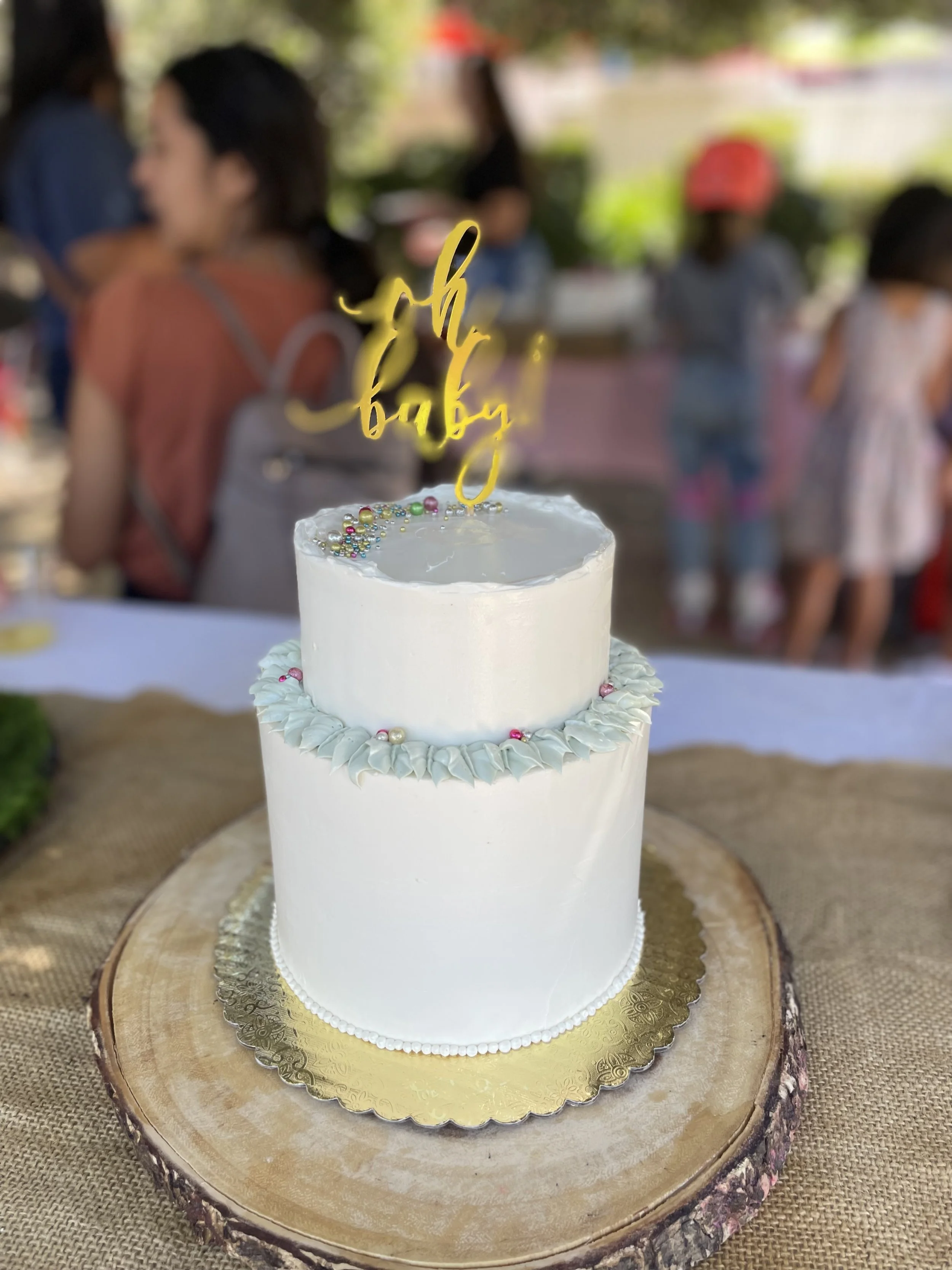 All cakes begin with a clean coat of natural ivory swiss meringue buttercream, the perfect base for what will be a delicious and beautifully decorated cake. I do not replicate cake designs. Instead I will create a design based on your event theme, color palettes, and pictures of designs you have seen that catch your eye (this could mean pics of cakes, buildings, nature, or anything that inspires You!). With those items as inspiration your dreamy buttercream cake will come to life :)
